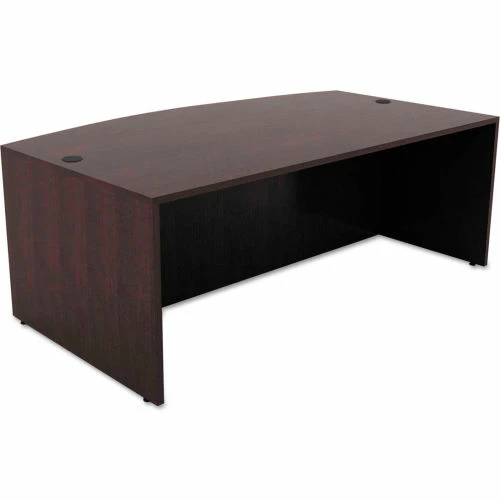 Commercial-grade laminate worksurface and side panels are water-, scratch- and stain-resistant. Charcoal accent line under worksurface adds a distinctive touch. Arched front with up to 18″ of conference overhang. Protective 3 mm edge banding helps prevent damage from bumps. Two grommets for cable and wire management. Full-length modesty panel for privacy. Use alone or combine with Return/Bridge Shell to create an “L” grouping; add a Credenza Shell to form a complete “U” workstation.