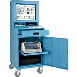 Global Industrial Mobile LCD Computer Cabinet, Blue, Assembled