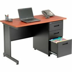 Interion By Global Industrial Interion® Office Desk with 3 Drawers – 48" x 24" – Cherry