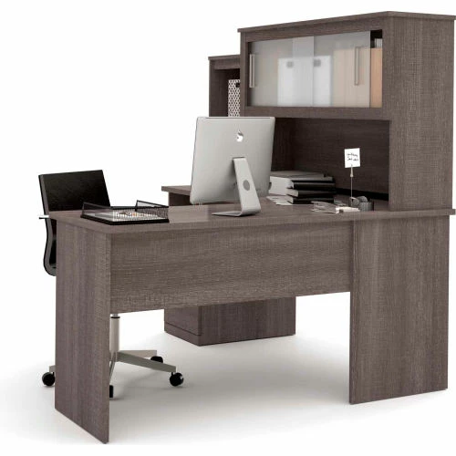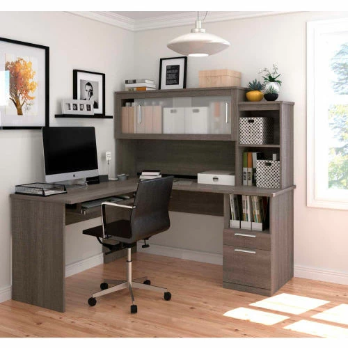 Bestar® L-Shaped Desk – Bark Gray – Dayton Series