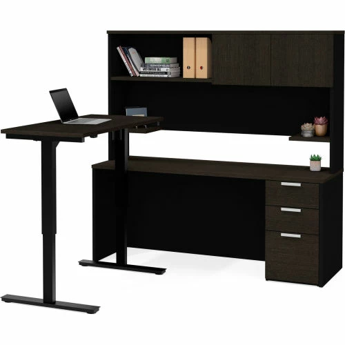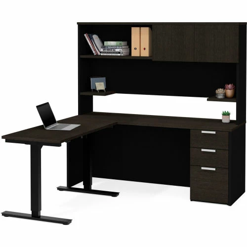 Bestar® Height Adjustable L-Desk with Hutch – Deep Gray and Black – Pro-Concept Plus Series