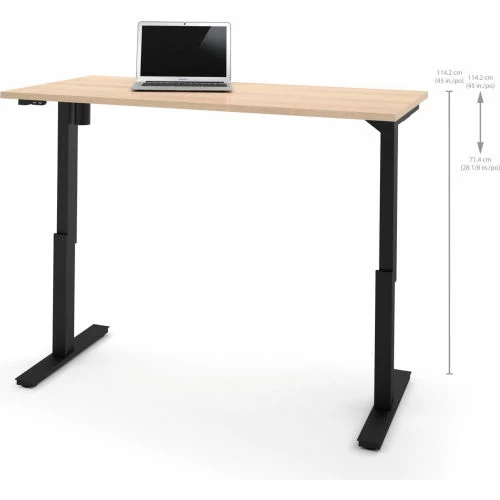 Bestar® Height Adjustable Table – Electric – 60" x 30" x 28" – 45"H Northern Maple