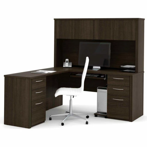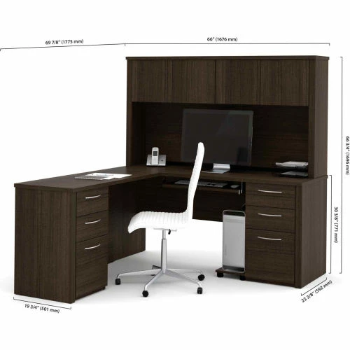 Bestar® L-Shaped Desk and Hutch – 66″ – Dark Chocolate – Embassy Series