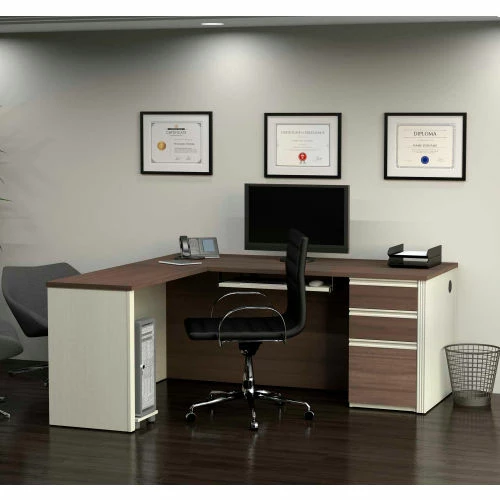 Prestige + is a timeless modular collection that will adapt to your needs, over time. With its wide range of products, it is ideal for every type of office. The desk is made of a durable 1″ commercial grade work surface with melamine finish that resist scratches, stains and wear. It features an impact resistant thick PVC edge, a modesty panel and classic moldings. Grommets are available on the desk for efficient wire management.