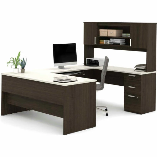 Bestar® U-Shaped Desk – Dark Chocolate and White Chocolate – Ridgeley Series