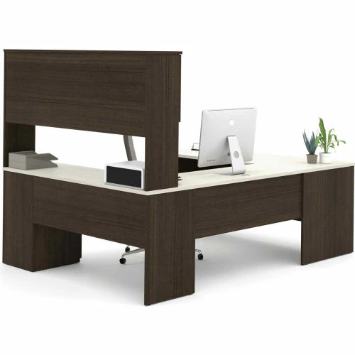 Bestar® U-Shaped Desk with Lateral File and Bookcase – Dark/White Chocolate – Ridgeley Series