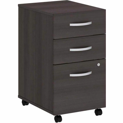 The Bush Business Furniture Studio C 3 Drawer Mobile File Cabinet rolls with you throughout your office or remains in place as needed on any surface. You’ll have your letter, legal and A4-size paperwork organized in no time as the Mobile File Cabinet ships fully assembled for your convenience.