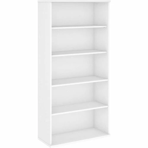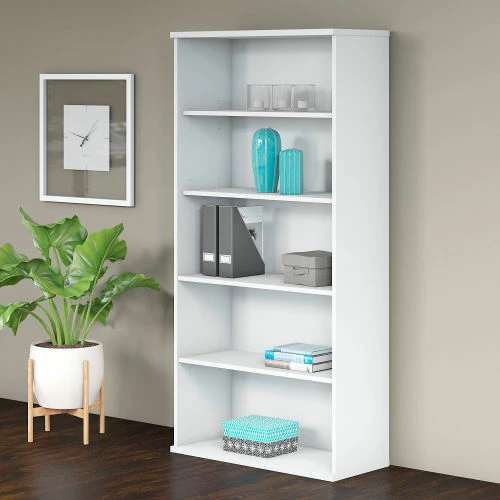 The Bush Business Furniture Studio C 5-Shelf Bookcase looks great, works hard and adjusts to fit the needs of your office. Designed with 2 fixed and 3 adjustable shelves, the Bookcase holds your books and reference materials with room for your favorite decorative accents. Store a variety of items on the spacious and durable shelves, designed to hold up to 50 lbs each.