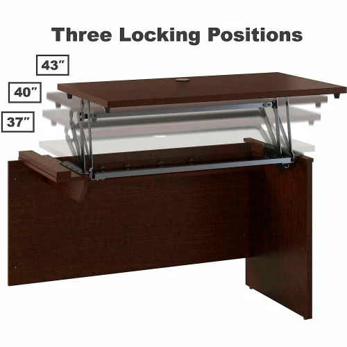 Fixed desks and storage are tested to meet ANSI/BIFMA standards for safety and performance, and the mechanical lift system is rigorously tested to meet Bush Business Furniture’s own quality standards. This office furniture set comes in your choice of stylish Mocha Cherry or Hansen Cherry with Graphite Gray finishes and is backed by a 10 year manufacturer’s warranty. American made with U.S. and imported parts.