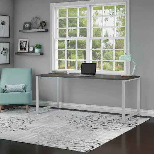 This Bush Business Furniture 400 Series Table Desk inspires creativity with a sturdy construction and refreshingly contemporary looks. The Table Desk mixes open metal legs with a wide, wooden work surface, providing space to spread out and ample legroom. Sturdy Desk legs boast a welded steel tube construction, while the thermally fused laminate finish and impact resistant edges fend off damage for a long-lasting professional appearance. Adjustable levelers compensate for uneven flooring. This Table Desk with metal legs makes a nice addition to a private or home office, but also works well in an open plan environment.