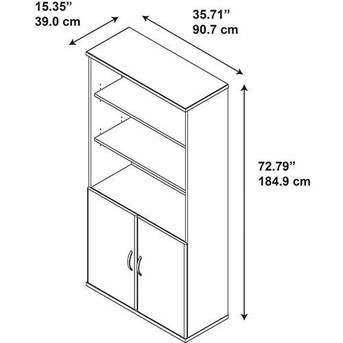 Store reading materials or display memorabilia with the Series C Elite 36W 5 Shelf Bookcase with Doors by Bush Business Furniture. Make your space go further with this smart-looking bookcase that provides maximum flexibility with one fixed and three adjustable shelves. Includes Half Height Door Kits to keep unwanted papers out of sight on lower shelves. Door design includes Euro-style, self-closing, adjustable hinges and provides two right-or-left mountable doors for placement flexibility. Meets ANSI/BIFMA standards for safety and performance. Backed by Bush Business Furniture’s 10-Year Warranty. American made with U.S. and imported parts.