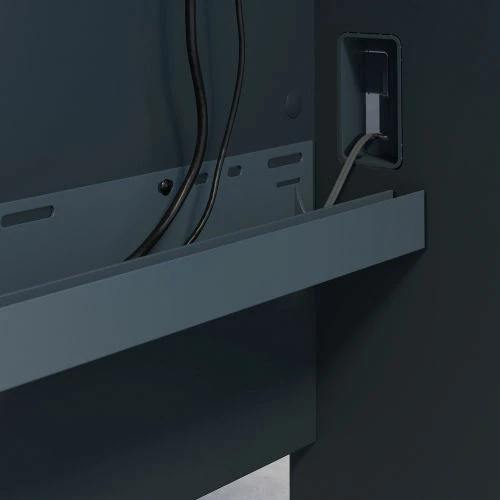 - Wire management system includes leg and desktop grommets with channels on the modesty panels to keep cables under control
