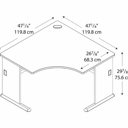 - Corner Desk provides comfortable curved work area and C-Leg design to maximize legroom