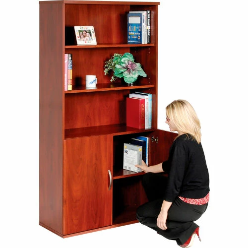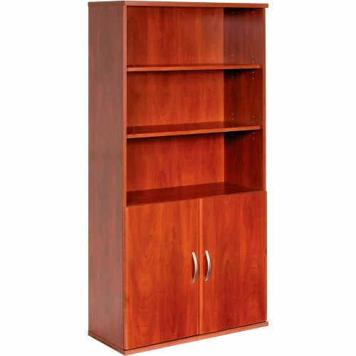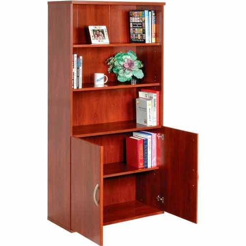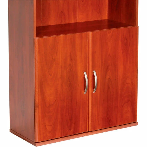 This office furniture collection is great for executive office, home office, doctors office and even reception area environments. Modular office furniture features durable, rich cherry finished 1 thick laminate work surfaces that are scratch and stain resistant. Door Kit easily installs to either single or double bookcase to provide a closed storage space with self-closing, adjustable hinges. Meets ANSI/BIFMA standards. Easy assembly.10 Year Limited Warranty.