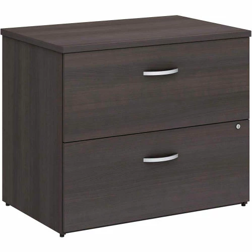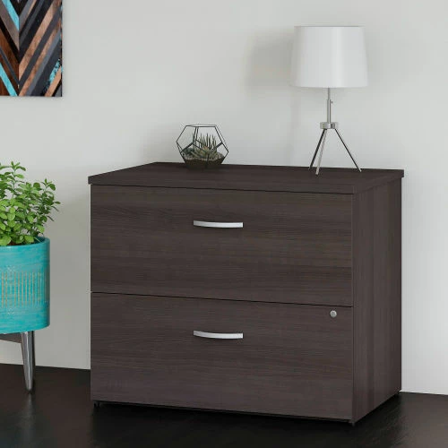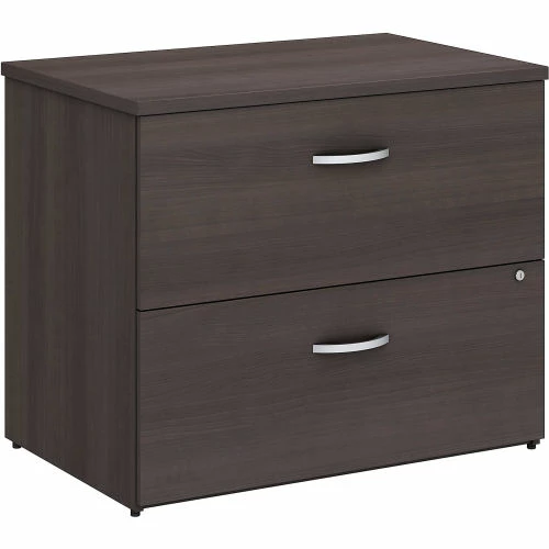 Keep your paperwork under control with the stylish and convenient Bush Business Furniture Studio C Lateral File Cabinet. Featuring 2 spacious drawers, the contemporary cabinet ships fully assembled so you’ll be organizing your letter, legal and A4-size documents in no time. The Lateral File Cabinet drawers glide on smooth, full-extension ball-bearing slides so you’ll have no trouble reaching items in the back. Store your most important files without a worry as a single lock secures both drawers. Eye-catching Brushed Nickel drawer pulls complement the White or Storm Gray finish to make the Lateral File Cabinet as attractive as it is functional. Designed with your comfort in mind, the cabinet matches the height of Studio C desks (sold separately) to extend your workspace when placed side by side.
