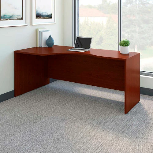 Roomy, comfortable and commercial-grade. The Bush Business Furniture Series C 72W Left Handed Corner Desk provides a lasting professional appearance with clean lines, an extended modesty panel and heavy-duty construction. A comfortable, curved design invites you to lean in and get to work, while a thermally fused laminate finish fends off scratches and stains. Thick end panels and rugged edge banding ensure continued commercial quality. Spread out with paperwork and devices on the spacious 72W surface while concealing cables in an integrated wire management grommet. Use the Left Handed Desk on its own or attach to matching Series C products to create L and U Shaped configurations. Add a Hutch, Keyboard Tray or Monitor Arm (all sold separately) to complete your office. The options are endless with Series C. Backed by a 10 Year Warranty, the collection withstands the rigors of a 40-plus hour week. Multiple layout options and 7 finishes meet the needs of numerous workspaces. Series C evolves with your preferences, allowing you to reconfigure your office as required with a complete line of coordinated products. American made with U.S. and imported parts.