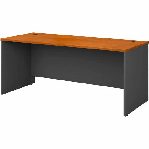 Get a wide work surface and opportunities for expansion with the Bush Business Furniture Series C 72W x 30D Office Desk. Spread out with your paperwork, computer, phone and more on the rugged thermally fused laminate surface while concealing your cables in wire management grommets for a clutter-free work area. Depend on continued quality with a heavy-duty design, thick end panels and tough edge banding. Use the Office Desk by itself or expand your workspace with matching Series C products to form an L or U Shaped configuration. Complete your office by adding a Hutch, Mobile File Cabinets, Keyboard Tray or Pencil Drawer (all sold separately). Extended modesty panels and clean lines make a lasting impression. The options are endless with Series C. This affordable American furniture boasts quality craftsmanship to withstand the rigors of a 40-plus hour work week and comes with a 10 Year Warranty. Seven stylish finishes blend seamlessly in any environment. Multiple layout options meet the needs of numerous workspaces, from the private or home office to reception areas and conference rooms. Series C evolves with your preferences, allowing you to reconfigure your workspace as required with a complete line of coordinated commercial office furniture.