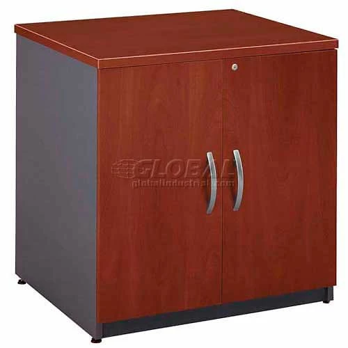Customize your storage with the BBF Series C Collection 30W Storage Cabinet finished in Hansen Cherry for classic styling with clean lines. This convenient storage unit offers Euro-style self-closing hinges and a lock to secure your supplies. The interior offers ample space with an adjustable shelf to make room for electronics, printers and more. This unit is constructed with 100% thermally fused laminate for durability and superior resistance to scratches and stains. Integrated wire management grommet located in the back of the cabinet keeps your office neat, while adjustable leveling glides enable you to compensate for uneven floors. Combine the 30W Storage Cabinet with a 30W Hutch to expand your storage capacity, while creating an attractive wall unit. Place the Hutch at the end of your Series C desk to increase desk storage and function. Two Storage Cabinets work side-by-side and can accommodate a 60″W Hutch for greater versatility. Solid construction meets ANSI/BIFMA test standards in place at time of manufacture. The Series C Collection is backed by the BBF 10-Year Warranty. American made with U.S. and imported parts.
