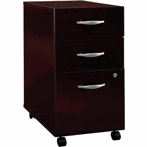 Enjoy mobile storage that works wherever you do. The Bush Business Furniture Series C 3 Drawer Mobile File Cabinet rolls smoothly on dual-wheeled, hooded casters for years of easy, everyday use. Slide the Cabinet under a coordinating Series C Desk to save space or move it around the office as needed. A single lock secures the bottom two drawers to protect your letter, legal and A4 files. The file drawer glides on smooth, full-extension ball bearing slides for an effortless reach to the back, and two box drawers store office supplies. Brushed Nickel hardware makes a lasting impression. The options are endless with Series C.