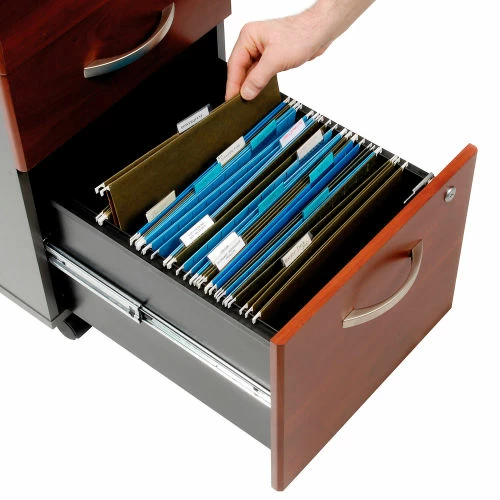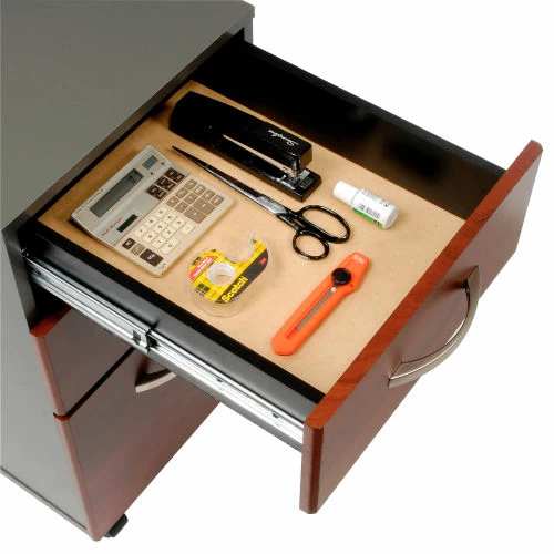 This office furniture collection is great for executive office, home office, doctors office and even reception area environments. Modular office furniture features durable, rich cherry finished laminate surfaces that are scratch and stain resistant. File Cabinet has drawers with an anti-tip safety feature, full extension ball bearing slides and one gang lock for security. Mobile Drawer File Cabinet has 2 box drawers and 1 legal/letter file drawer. Includes swivel casters for easy mobility. Fits under desk top for pedestal placement. Meets ANSI/BIFMA standards. Easy assembly.10 Year Limited Warranty.