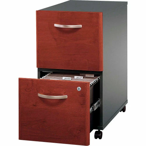 Enjoy mobile storage that works wherever you do. The Bush Business Furniture Series C 2 Drawer Mobile File Cabinet rolls smoothly on dual-wheeled, hooded casters for years of easy, everyday use. Slide the Cabinet under a coordinating Series C Desk to save space or move it around the office as needed. A single lock secures both drawers to protect your letter, legal and A4 files. Drawers glide on smooth, full-extension ball bearing slides for an effortless reach to the back, and Brushed Nickel hardware makes a lasting impression. The options are endless with Series C.