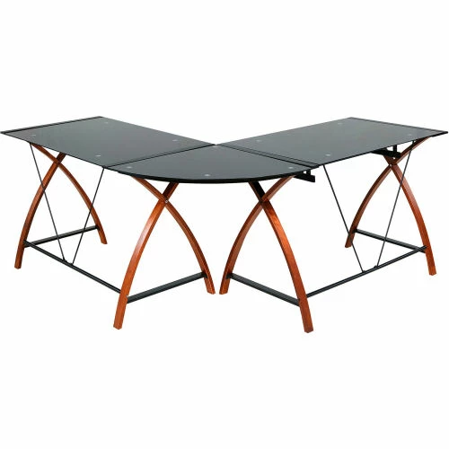 The Lescot L-Shaped Desk is the ultimate in affordable modular flexibility. Its distinctive arched wood frame with sleek black surface is the perfect blend of modern and contemporary. And its space-saving design is ideal for corner placement in any work or home office environment. More than that, it comes with 3 pieces you can configure to 1 or 2 desks, and allows you to easily add pieces as your needs evolve. For instance, you can extend the “L”, or you can create a wider rectangular working area (see Lescot Computer Desk and Lescot Writing Desk, sold separately). However you configure it, each piece provides ample desktop space for online or offline multi-tasking, and includes a convenient easy-use computer tray that fits any type of keyboard. The handsome arched frame is made of MDF wood, which can perform better than actual wood over the long haul. And its tempered safety glass surface supports up to 130 pounds with ease. This truly modular desk is one you can continually add to and configure for wherever, whenever, however you prefer. All at a surprisingly affordable price, and value that lasts through several computer upgrades.
