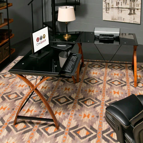 OneSpace 50-JN15L05 Lescot L-Shaped Computer Desk, Black
