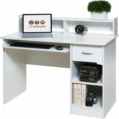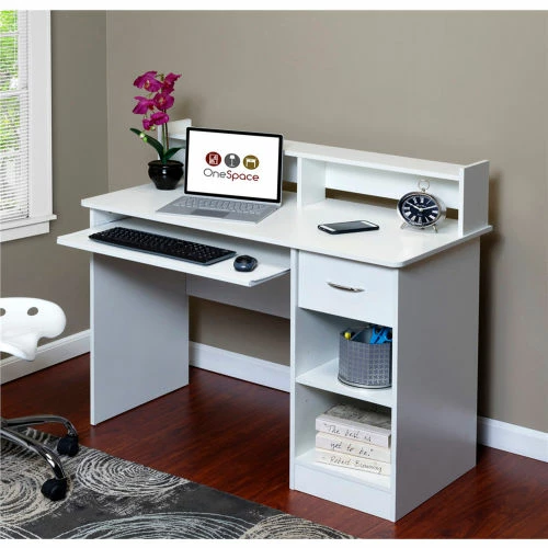 Comfort Products OneSpace 50-LD0101 Essential Computer Desk, Hutch with Pull-Out Keyboard, White