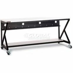 Kendall Howard 96" Performance 200 Series LAN Station with Full Bottom Shelf, Folkstone Gray