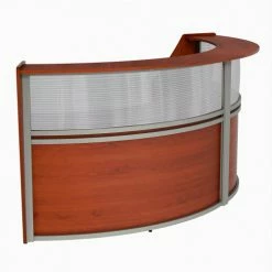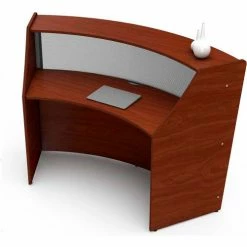 Linea Italia Curved Modern Reception Desk with Counter, 2 Units, 124"W x 49"D x 46"H, Cherry