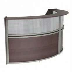 Linea Italia Curved Modern Reception Desk with Counter, Clear Panel, 124"W x 49"D x 46"H, Mocha