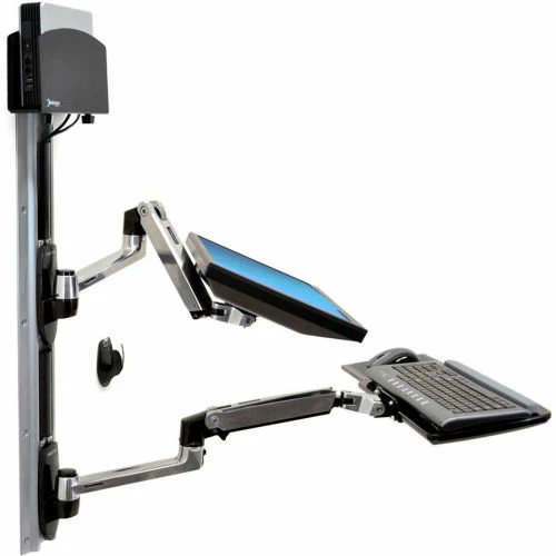 - Includes : 10″ and 34″ Wall Tracks with (2) black track covers, LX Wall Mount LCD Arm, LX Keyboard Arm, wrist rest, mouse pad, mouse holder, Small CPU Holder, two (2) 10″ Cable Channels, mounting kits for hollow-wall and wall-stud installation