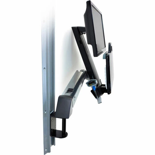 - Includes Combo Arm, wall mount bracket, track mount bracket kit, height-adjustable LCD mount, wrist rest, scanner and mouse holder, integrated keyboard tray with left/right mouse tray, handle, VESA monitor mounting kit, cable ties
