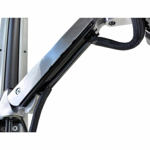 Durable polished aluminum construction! Holds a monitor, bar-code scanner, keyboard, wrist rest and mouse on the same arm, providing easy, single-motion height adjustment. Work sitting or standing with the arm’s ergonomic 25″ (64 cm) LCD height adjustment range. A unique cable management system conceals and organizes cords, making cleaning easy.
