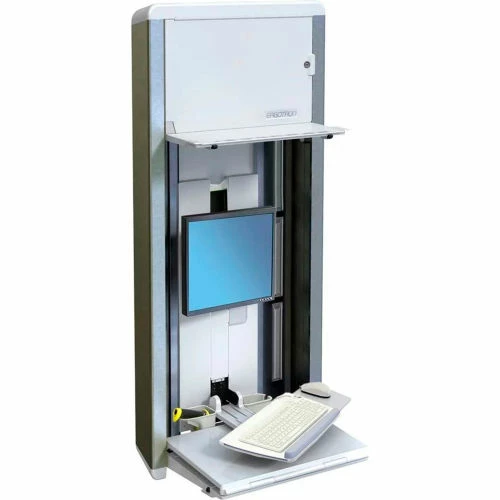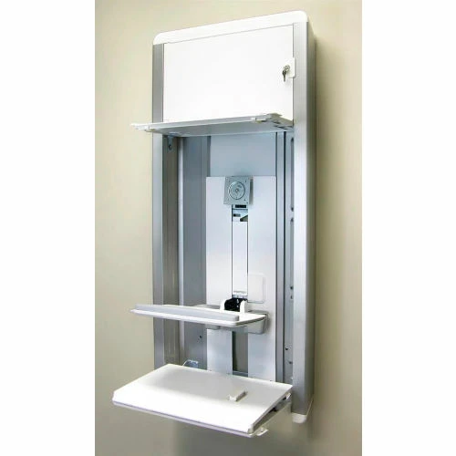 - Includes wall plate, mounting template, enclosure, vertical lift, slide-out keyboard tray, wrist rest, mouse pouch, scanner holder, internal cable management, batteries, monitor mounting hardware, wall mounting hardware, keys