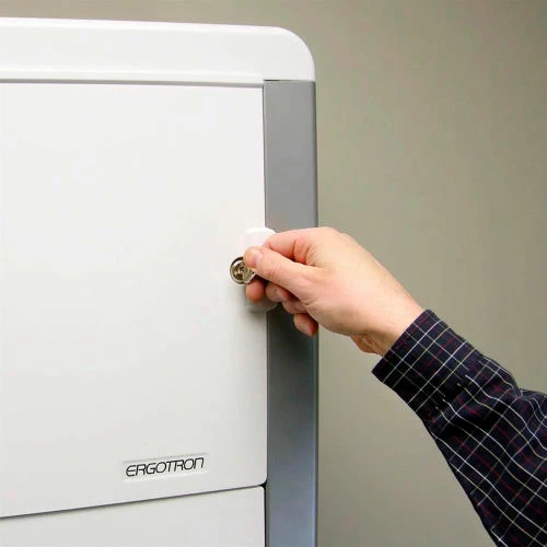 Secure, complete, compact workstation. Perfect for space-constrained patient rooms, the low profile vertical lift provides 9″ (23 cm) of smooth height adjustment and folds into a slim, compact unit when not in use. Its keyless locking mechanism protects patient data for compliance with privacy requirements. The slide-out, negative-tilt keyboard tray enhances user comfort, and the panning capability of the monitor and keyboard promotes patient-caregiver interaction. A unique cable management system conceals and organizes cords, making cleaning a snap!