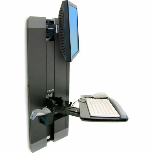 Perfect for space-constrained patient exam rooms, the low-profile vertical lift provides 9″ (23 cm) of smooth vertical adjustment and folds into a slim, compact unit when not in use. The slide-out, back-tilt keyboard enhances user comfort, while the monitor and keyboard pan capability promote patient-caregiver interaction. A unique cable management system conceals and organizes cords and makes cleaning a snap!
