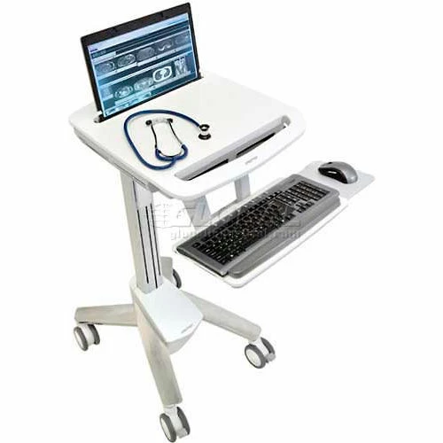 Incredibly lightweight! This innovative, truly ergonomic and easy-to-maneuver healthcare cart features sit-to-stand height adjustment and an adjustable back-tilt keyboard tray.