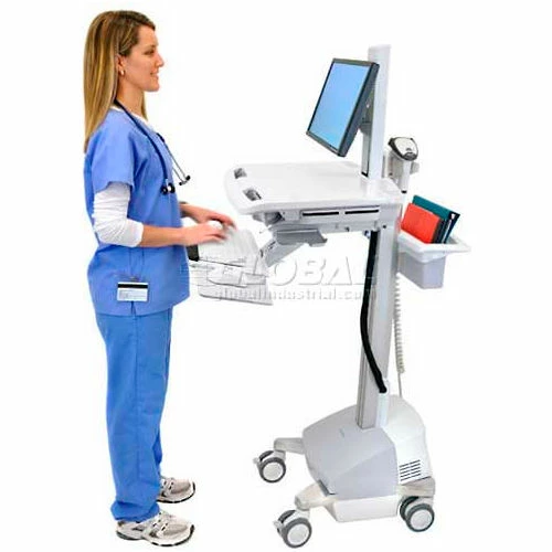 Stay productive and on the go with our certified power system. This innovative, truly ergonomic and easy-to-maneuver healthcare cart features sit-to-stand height adjustment, independent screen positioning and an adjustable back-tilt keyboard tray.