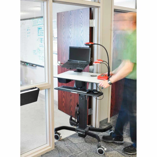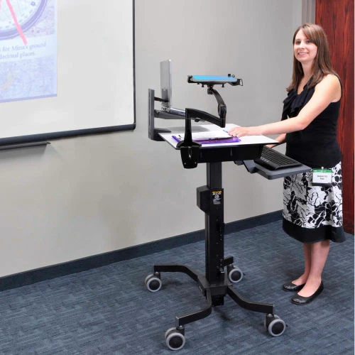 - Offers sit-stand computing capability with proper computing ergonomics for comfortable instruction throughout the day