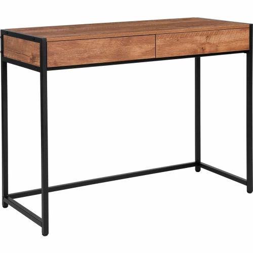 Enjoy an interesting design with earthy ambiance. Ideal for a student’s room or home office, this writing desk lends a hint of industrial style. This ultra-minimalistic desk is the perfect companion to any room with it clean lines and simple wood design. This writing desk offers two full-length push to open drawers that can store notepads, writing utensils and blueprints. If you are looking for the perfect place for working, studying or browsing this desk is the perfect piece of furniture.