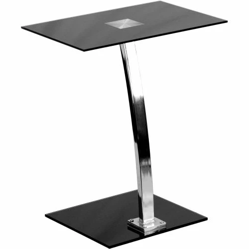 Save space while providing the laptop or writing setup you need. Silk black tempered glass paired with the chrome finish give this laptop desk a sleek upscale appearance. This portable desk is perfect for casual and work related use. The adjustable frame allows you to customize to your preferred height while on the sofa or bed. Table can be used for small presentations in the classroom. Beauty and functionality merge seamlessly in the exquisite minimalistic design of this desk.