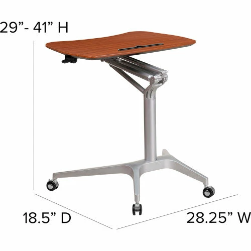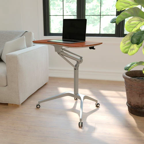 Achieve a healthier way of working with this contemporary, versatile laptop computer desk. We all know that sitting for hours is an unhealthy practice, but with long workdays it has become more common. Standing helps strengthen leg muscles, improves your balance and promotes healthy blood flow. Standing even burns more calories than sitting. This ergonomic desk gives you the option to sit down or stand up. The pneumatic lever allows you to easily adjust the height with minimal effort. When preparing to work you should adjust the desk so the surface is at the most comfortable position for typing.