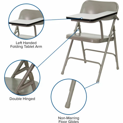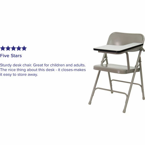 Many night schools, training facilities, book clubs and other groups use tablet arm chairs as an affordable and compact solution when seeking out chairs and desks. A tablet arm chair can also be a great addition in the home as a dedicated space for studying. This folding chair with the added tablet arm extension provides you the benefits of a standard folding chair like its portable lightweight design that is easy to store if needed.