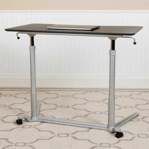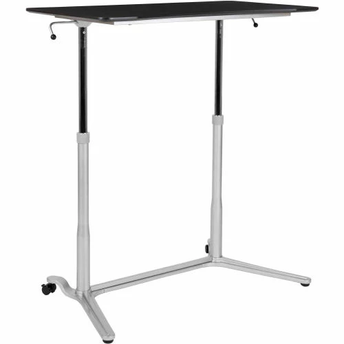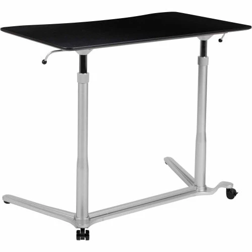 We all know that sitting for hours is an unhealthy practice, but with long workdays it has become more common. Standing helps strengthen leg muscles, improves your balance and promotes healthy blood flow. Standing even burns more calories than sitting. The pneumatic levers on both sides of the table allow you to easily adjust the height with minimal effort. When preparing to work you should adjust the desk so the surface is at the most comfortable position for typing. The large surface make this desk suitable for laptops and desktop monitors. Since desktops are heavier than laptops, front adjustable glides were added to the front of the desk, while locking casters are added to the back legs, making this desk essentially mobile.