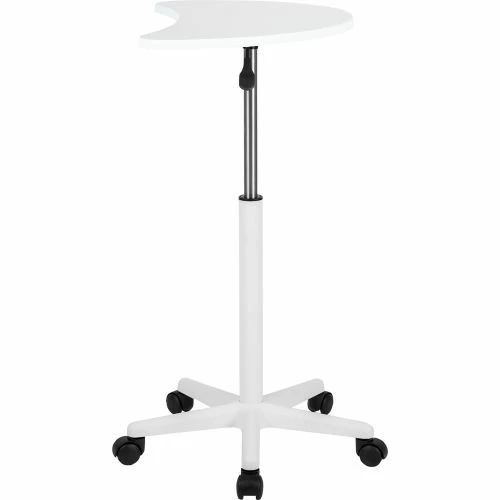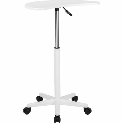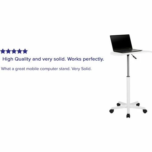 Whether your’re browsing the internet in bed or giving a presentation to clients this white sit to stand mobile laptop computer desk offers a versatile workspace on wheels for your home or office. Undo
