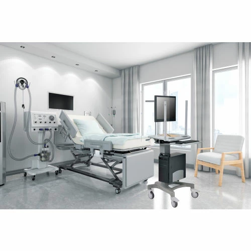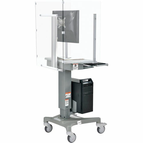 - 1 Top rear bracket – steel bracket for attaching clear plastic rear panel with coved washers, nuts, and bolts to computer cart upright with 3x self-tapping screws