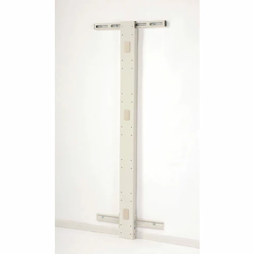 This sturdy 5″W x 2″D steel post mounts to wall and includes 2 support legs that can be bolted to the wall. Permits mounting of work surfaces as 30″ and 40″H and monitor mounts at 47″, 58″ and 69’H. Powder coat finish. Easy assembly.