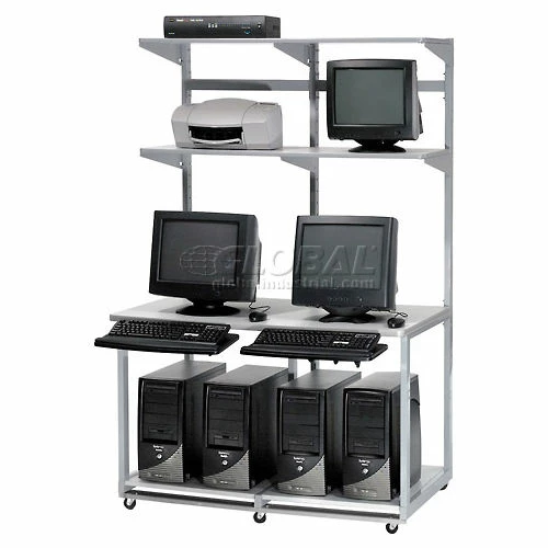 Global Industrial™ Chrome Wire Shelf Mobile Computer LAN Workstation, 31-1/2"W x 24"D x 63"H