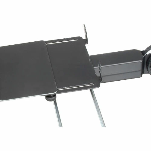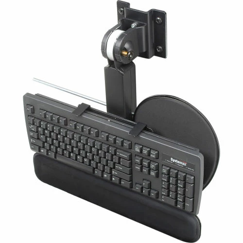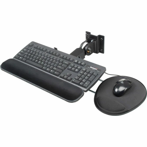 Platform arm allows convenient storage of keyboard and mouse and folds up or down when not in use. Easily installs on Global Industrial™ Orbit Columns and Posts (sold separately). Made using durable steel. Pullout knob allows 3-position adjustment for up, flat or down positioning. Keyboard platform is adjustable from 5-1/2″D to 9″D. Keyboard platform adjustment allow clamps keyboard in place using 2 hand screw knobs. Includes 18″W x 3-3/4″D padded wristrest for enhanced support. Includes width adjustable mousepad with built-in wristrest. Mousepad measures 8-1/2″W x 10-1/4″D. Includes a mouse holder for convenient storage. Mounting bracket measures 4-3/4″W x 4-1/2″H with mounting holes spaced 2-3/4″ apart. Bracket allows installation to Orbit posts or can be mounted to wall. Measures 18″W x 20″D overall. Currently no RoHS statement available.